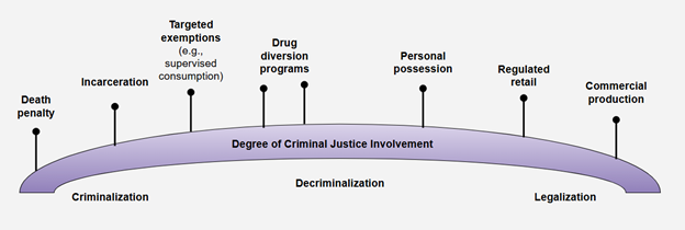 Source: Adapted from Rebecca Jesseman and Doris Payer, Decriminalization: Options and Evidence (Ottawa: Canadian Centre on Substance Use and Addiction, 2018).